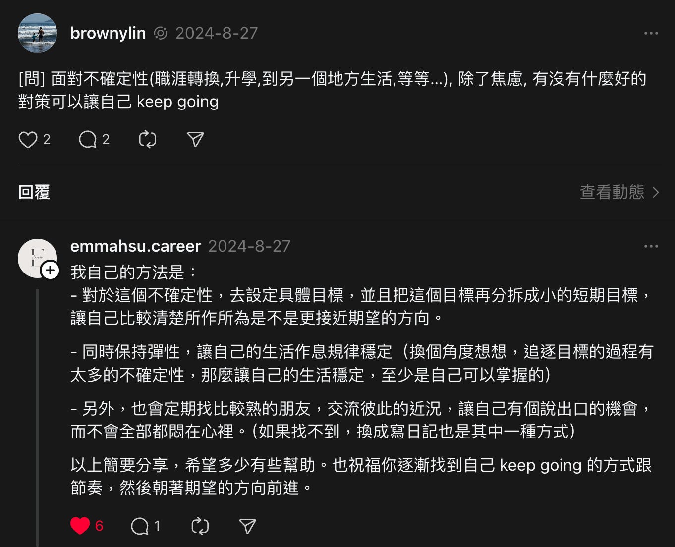 像是上面這則 thread 後來我將他發展成一篇電子報 《擁抱不確定性: 在變幻莫測的時代中茁壯成長》