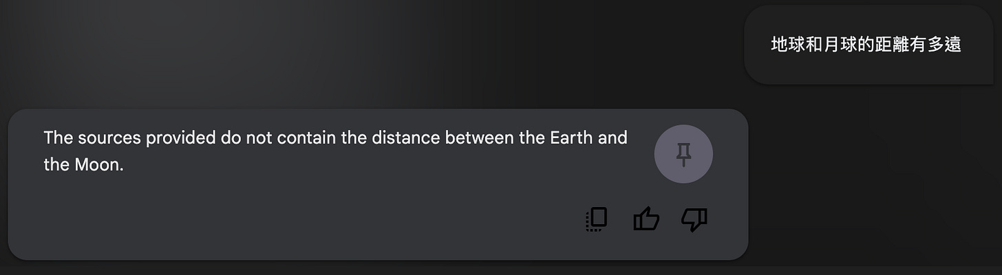 NLM 與 直接使用 ChatGPT (大語言模型) 最不一樣的地方就是它和你的對話都是有憑有據的 (術語 Grounding: 嚴格根據用戶提供的資料來回答問題)。如果你提供的資料沒有相關信息,它會直接回答不知道 (不會像 ChatGPT 那樣,很正經的給你一個錯誤的答案 或是 根本不存在的事實)。