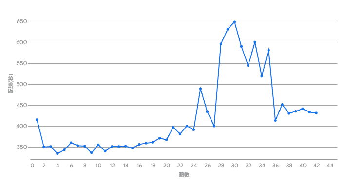 這樣反覆跑跑停停,我覺得不是個辦法 (看了看錶,距離被回收還有一些餘裕),果斷做了個決定,先走久一點讓腳休息夠再跑,原本的目標走到 30k,結果後來的痛苦指數一直讓我到 35k 才有動力再跑起來。